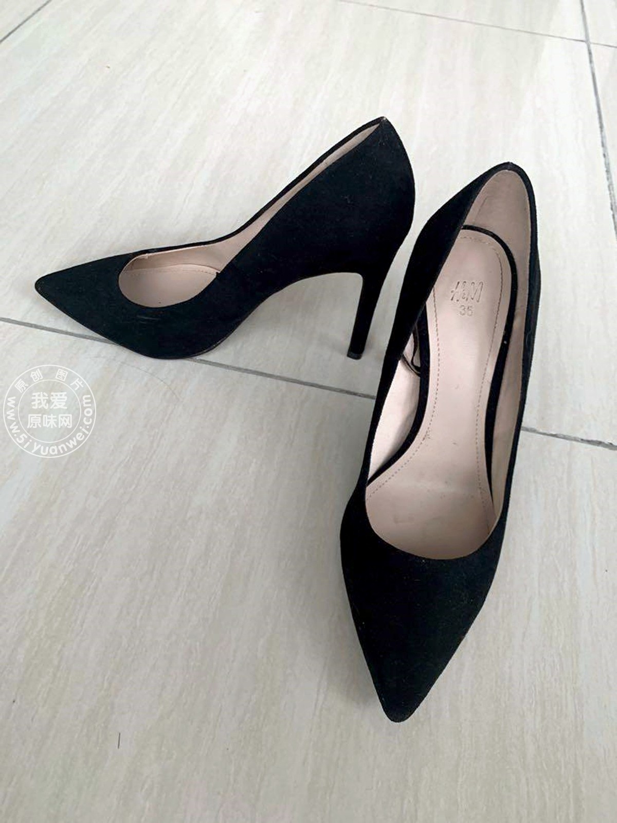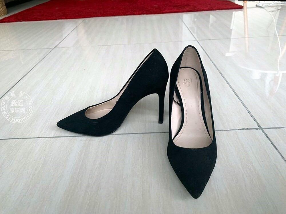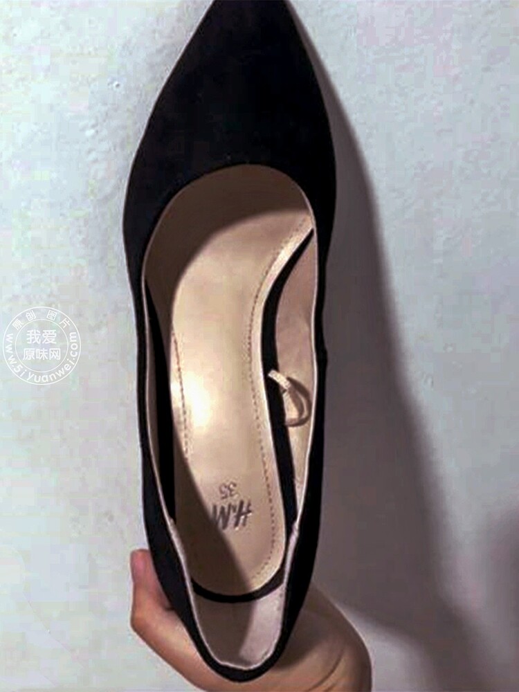 My wife and best friend's size 35 H& amp; M black suede high heels (with real people)